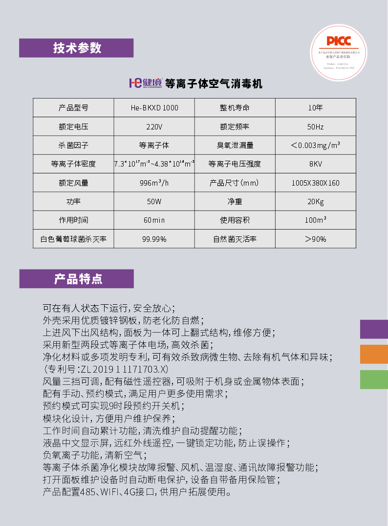 健境?He-BKXD1000型等離子體空氣消毒機(jī)(壁掛式)